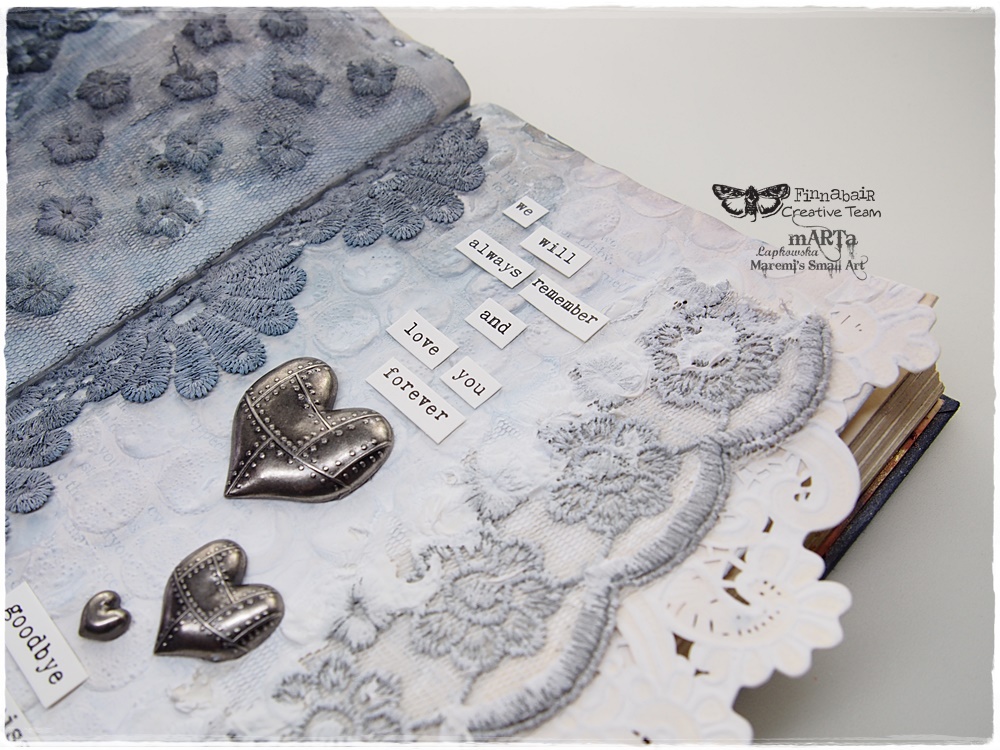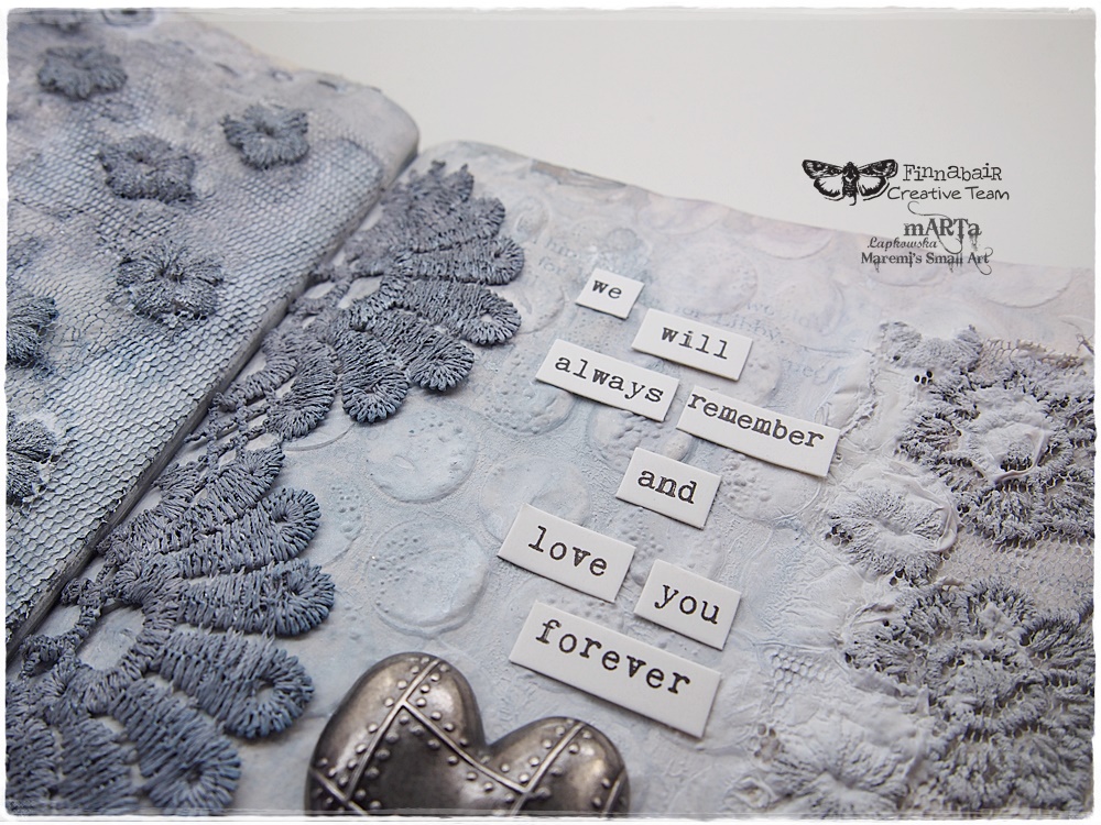 OdpowiedzUsuńI am sad for you on the loss of your beloved fur baby, I know only too well the pain and emptiness when they are no longer with us... I hope time brings some healing.. your art journal pages are lovely, I love the lace... and I hope just sitting and reflecting while you create has allowed some healing too...xx